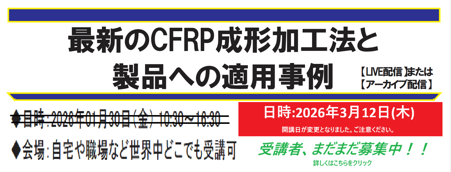 ※開講日変更【セミナーのお知らせ】最新のCFRP成形加工法と製品への適用事例