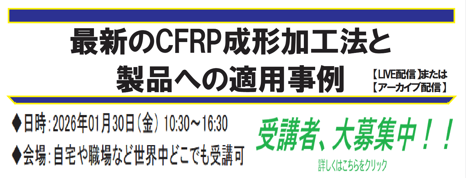 1月30日(金)に開講されます株式会社R&D支援センター様主催のセミナー「最新のCFRP成形加工法と製品への適用事例」の講師を弊社代表取締役の深川が講師を務めます。